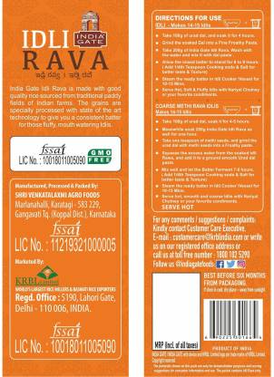 - 1 kg India Gate Idli Rava makes 70-75 Idli